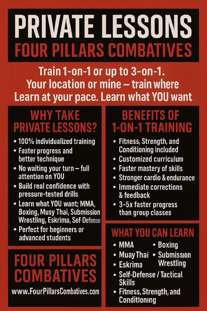 By opting in, you agree to receive periodic text messages & emails from Four Pillars Combatives. Your information will never be shared. Reply STOP to cancel. Standard rates may apply.